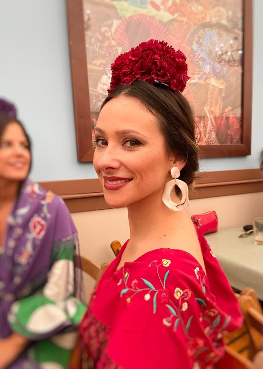 Pendiente Flamenca Aro Media Hortensia. Extragrande. Color Blanco