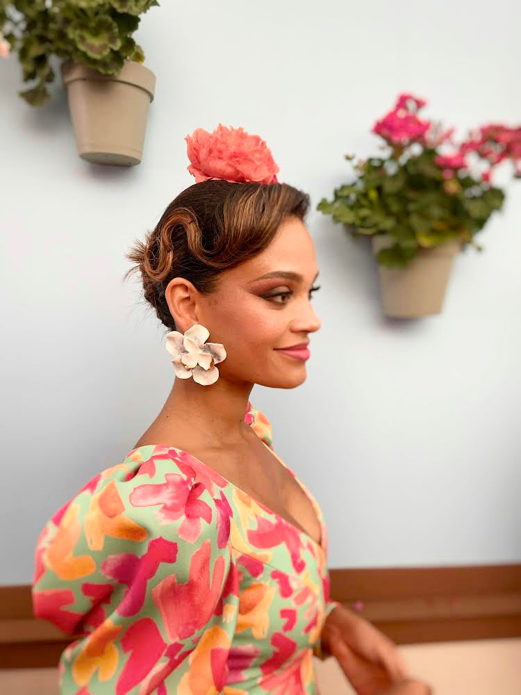 pendientes flor Jara. Grande. Color Azul Oceano.
